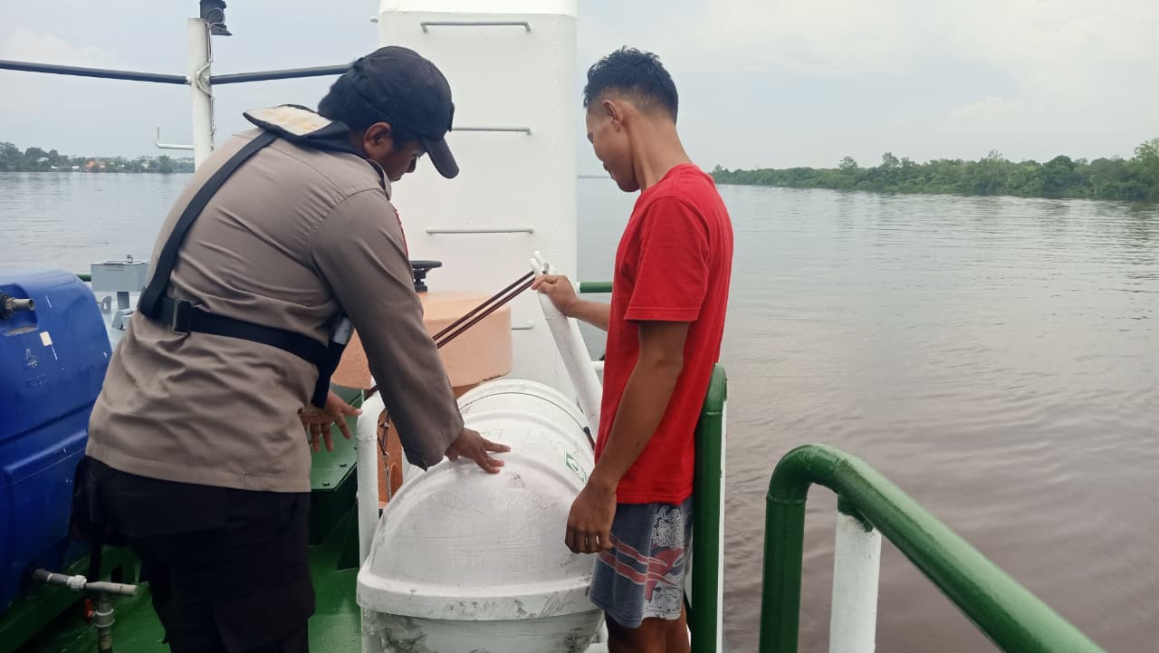 Patroli Rutin, Kapal Ditpolairud Polda Kalteng Periksa Dokumen Kapal dan Cek Alat Keselamatan