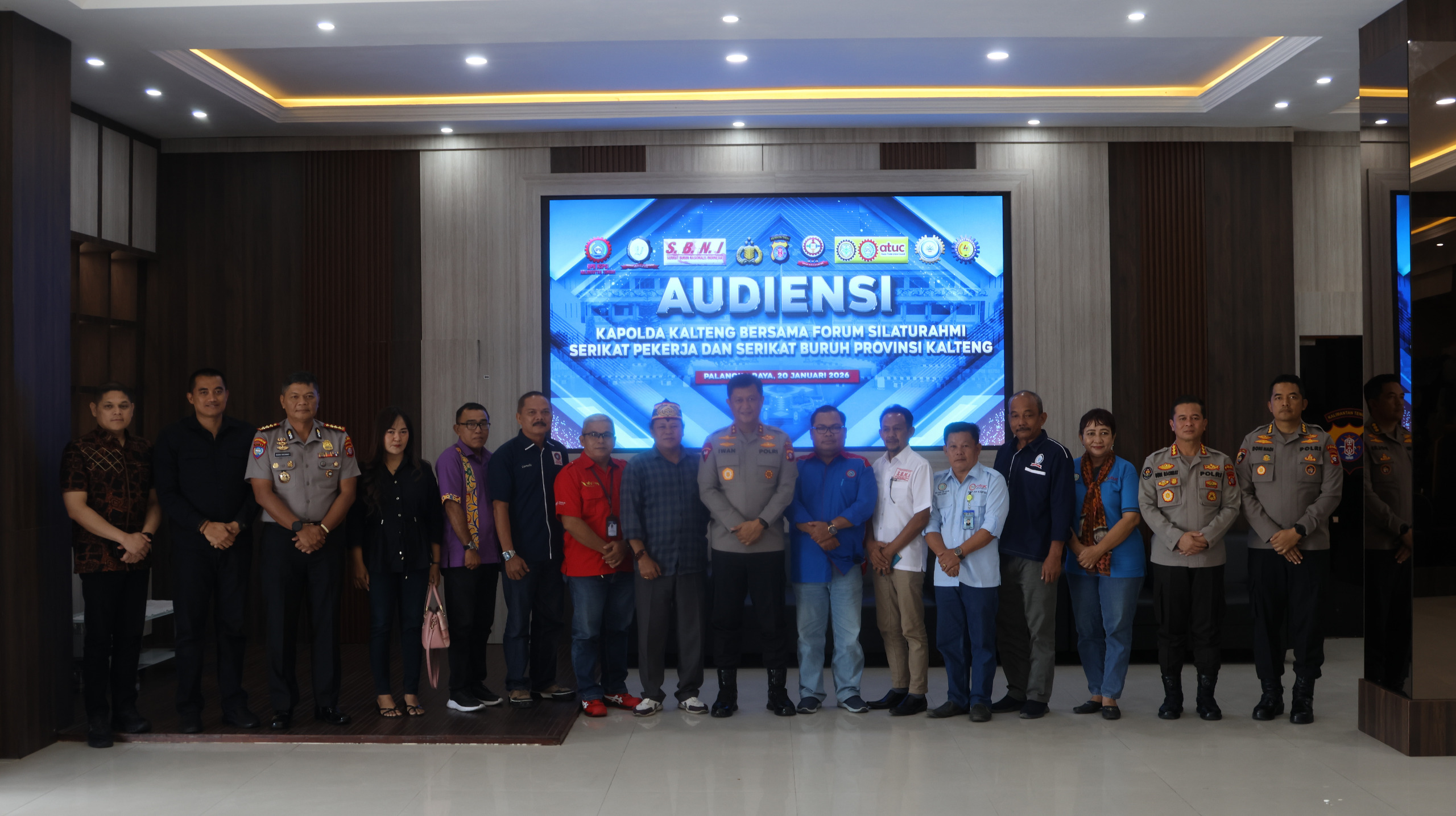 Palangka Raya – Kapolda Kalimantan Tengah (Kalteng) Irjen Pol Iwan Kurniawan, S.IK., M.Si. menerima kunjungan audiensi perwakilan Serikat Pekerja atau Buruh Provinsi Kalteng, di Lobi Utama Mapolda setempat, Selasa (20/1/2026) siang.